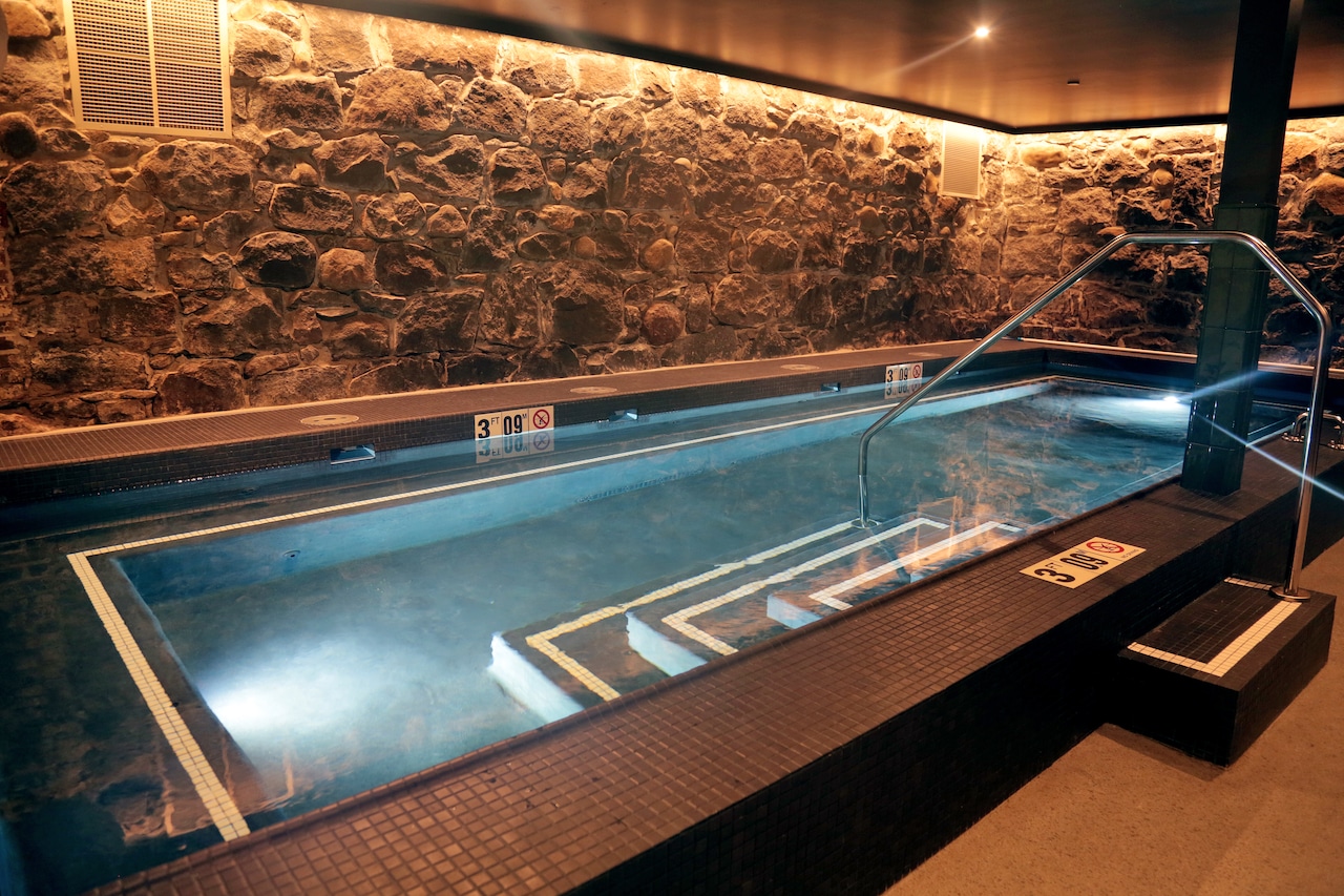 That includes the underground spa, open to guests as well as the general public, where a hot soaking pool has been built beside the enormous basalt rock wall that makes up the building’s original foundation. The hotel also offers a dry sauna and treatment rooms that will eventually house massage therapists, Genauer said.